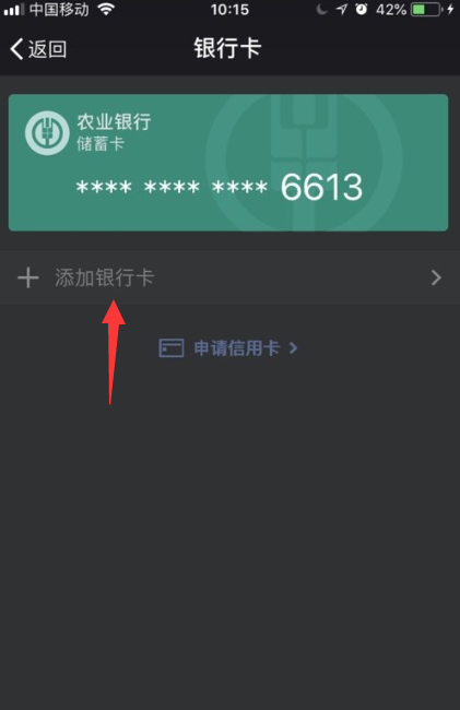 4、进入到银行卡管理界面,点击添加银行卡这一选项。