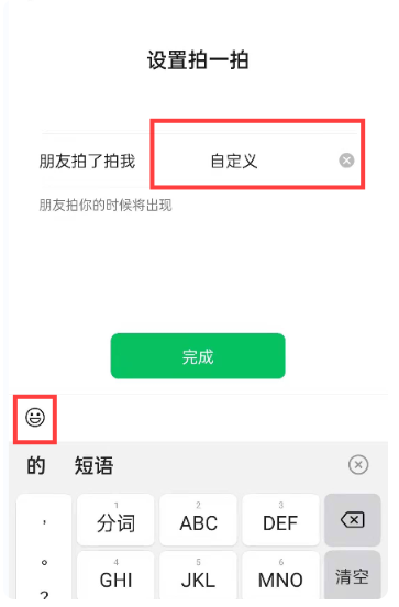 3、打开“拍一拍”,就可以设置文字内容啦,也可以根据自己的个性化需求添加合适的表情等。