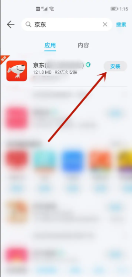 2、在搜索框中输入【京东】点击搜索,然后点击京东旁边的【安装】。