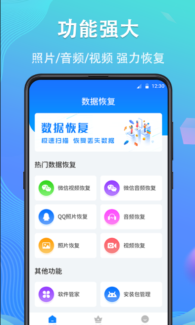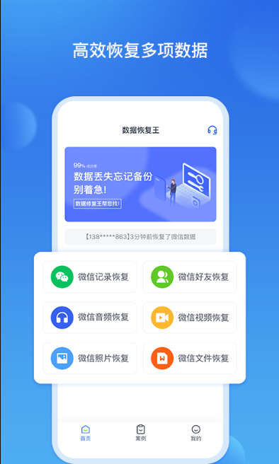 数据恢复王是一款专业的手机数据恢复软件,它通过强大的系统底层扫描检测技术,快速的找回并恢复您丢失的手机数据,支持误删及未保存微信语音、图片、视频、文件恢复。