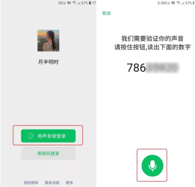 5、当微信密码忘记后,就可以点击【用声音锁登录】,注意语调不要太夸张。