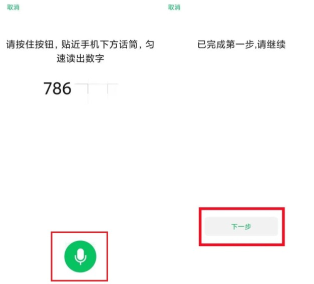 3、按住麦克风录音,朗读一串数字,即可创建一条属于自己的声音。