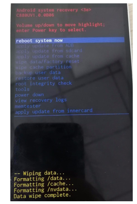 4、使用上下音量键选择选项。我们选择擦除数据/出厂记录选项,然后按电源按钮进行确认。