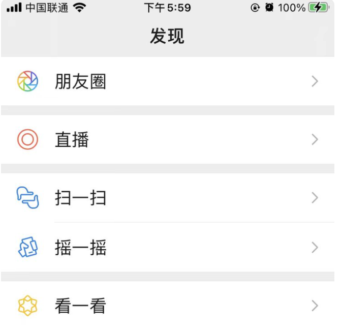 1、打开微信界面的“发现”页面。