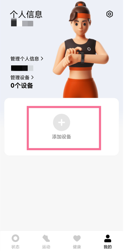 1、首先在手机上安装好小米穿戴APP并打开,点击“我的”进入后,点击【添加设备】。