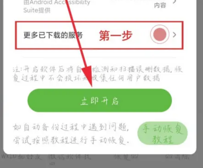 6、然后点击“更多已下载的服务”,接着点击“微信恢复助手”,找到“开启服务”即可。