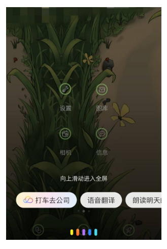 4、开启电源键唤醒后,我们长按电源键一秒钟,底部就会弹出语音,将此页面往上面滑转换成全屏。