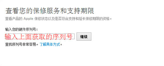 2、然后输入苹果手机的序列号,点击“继续”按钮。