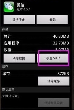 5、进入微信管理页面之后,找到“移至SD卡”这个管理按钮,点击这个按钮即可。