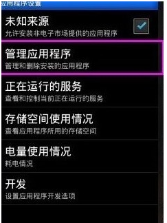 3、进入应用程序之后,点击“管理应用程序”