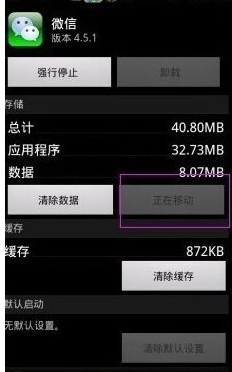 6、点击之后我们可以看到“移至SD卡”这个按钮变成不可以点击了,这个过程可能会持续20秒左右。