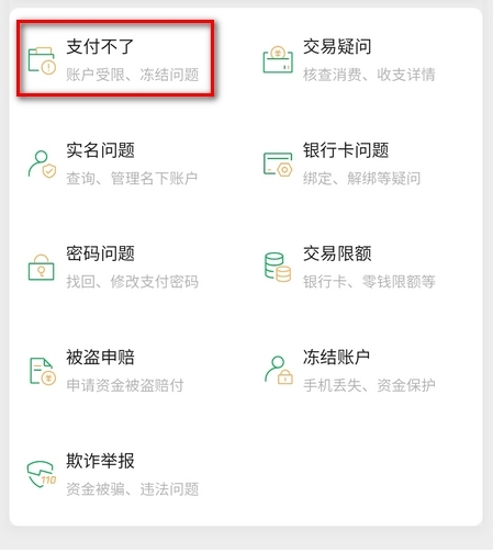 5、进入帮助中心界面之后,点击“支付不了”进入;