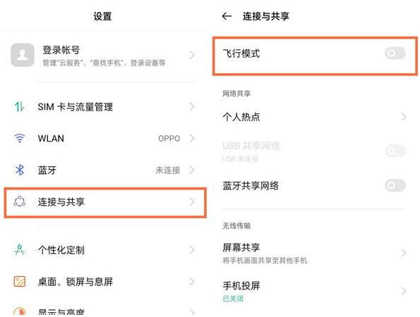 那么了解了飞行模式的含义后,自己不小心误开启飞行模式导致无法手机通话的情况下,要怎么关闭呢?下面以oppo手机为例,演示关闭方法: