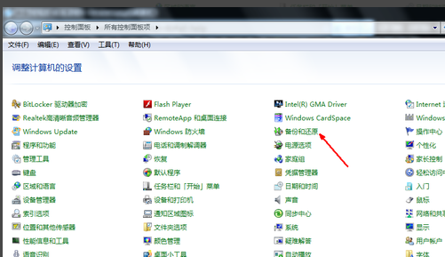 1.打开控制面板,在控制面板中选择备份和还原功能打开,进入下一步。