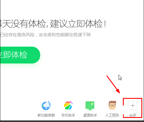 1.下载安装并运行360安全卫士,然后点击界面右下角的更多选项,进入下一步。