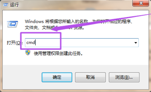 1,按下“win+r”快捷键打开运行,在运行对话框内输入“cmd”命令回车,如图下所示;