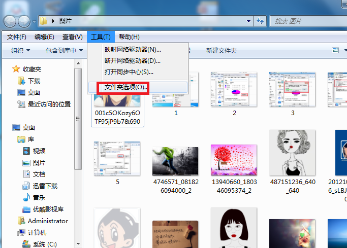 1、在电脑上进入任意一个文件夹,然后点击菜单选项“工具”下的“文件夹选项”。