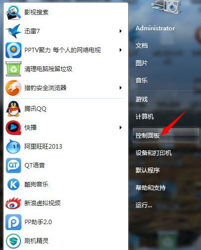 1、找到控制面板,在(开始)里面。