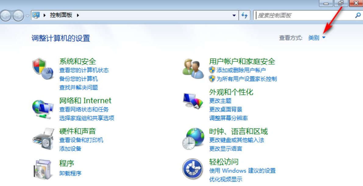 1、双击打开控制面板,进入后将上方的查看方式改为”大图标“。