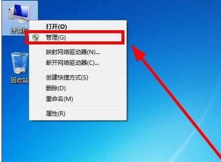 1、首先鼠标右键win7系统桌面的“计算机”图标,选择“管理”进入。