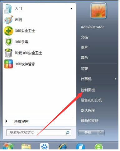 1、打开电脑桌面的开始菜单,点击控制面板。