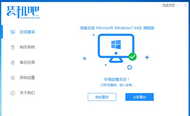 1、电脑安装好装机吧一键重装系统软件并打开,在这就可以下载安装win7的64位系统