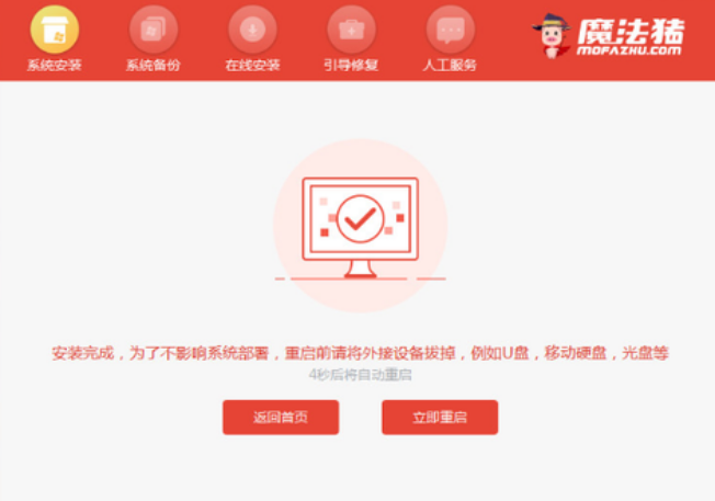 6、提示安装完成时,选择重启电脑。
