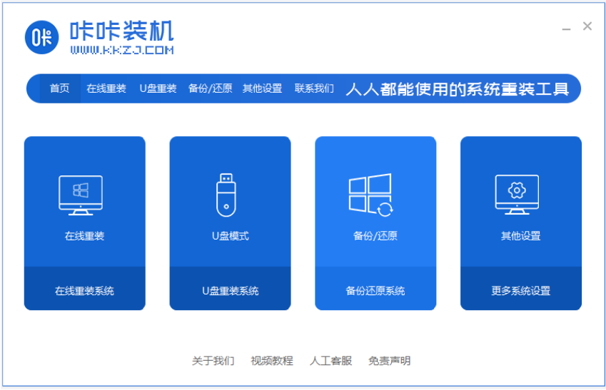 1、首先在浏览器上下载好win7精简版64位超小系统镜像解压到非系统盘,然后下载并打开好咔咔装机一键重装系统软件,选择第三个-备份还原系统。安装前备份好重要文件。