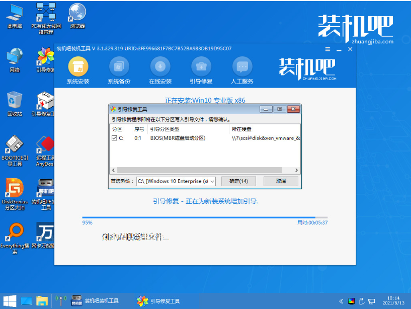 5、继续等待装机吧装机工具自动打开安装win10系统。