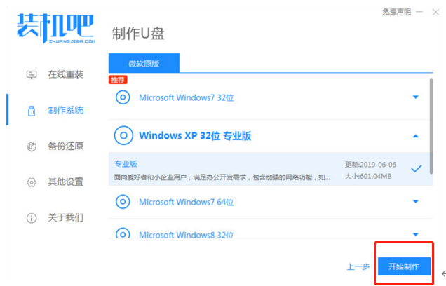 2、选择要安装的系统版本,点击开始制作,确认U盘内资料全部备份好。