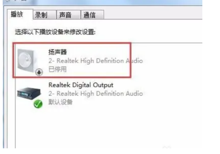 2、选中被禁用的扬声器,右键点击【启用】在确定保存设置。