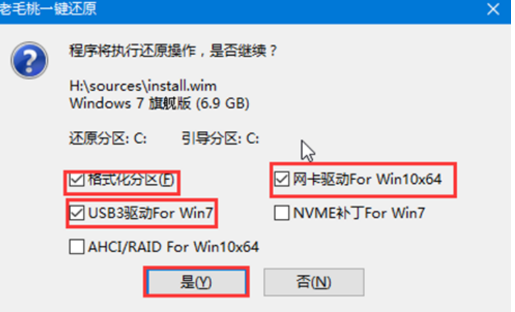 4、 弹出“一键还原”提示框,勾选,点击“是”继续安装 即可。