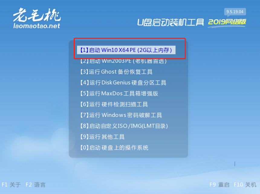 2、接着进行电脑bios设置u盘启动,进入进入老毛桃winpe 主菜单,然后选中【1】Win10X64PE(2G以上内存)并回车进入winpe桌面,准备重装win7系统。