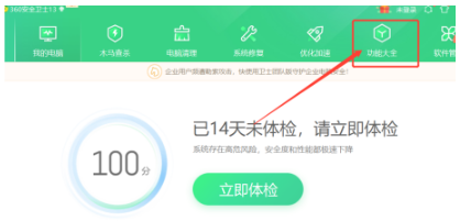 1、打开360安全卫士,在软件导航栏中点击功能大全。