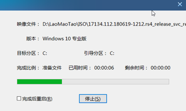 6、进入重启电脑阶段,拔出U盘,重启后电脑会自动进入系统部署阶段,无需手动操作,过程耗时较久,请大家耐心等待。