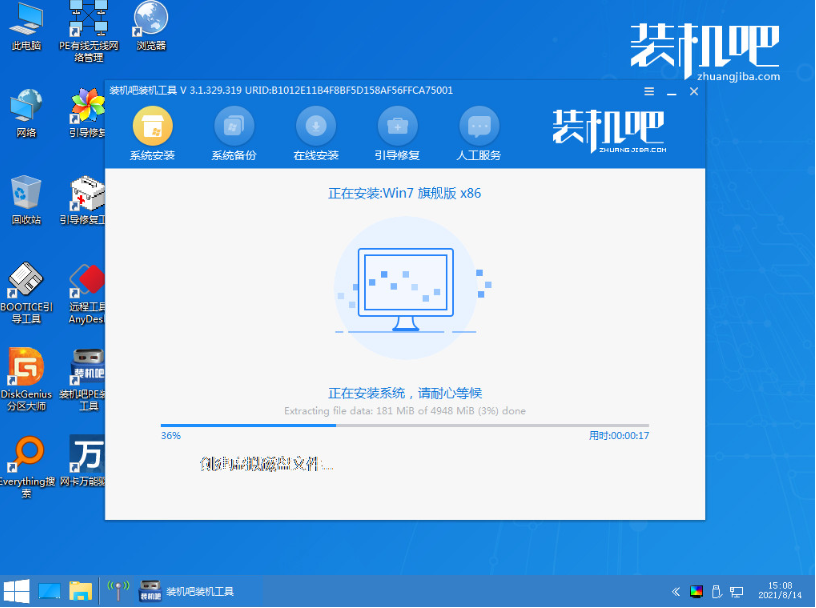 5、打开装机吧装机工具,选择win7系统点击安装到c盘。