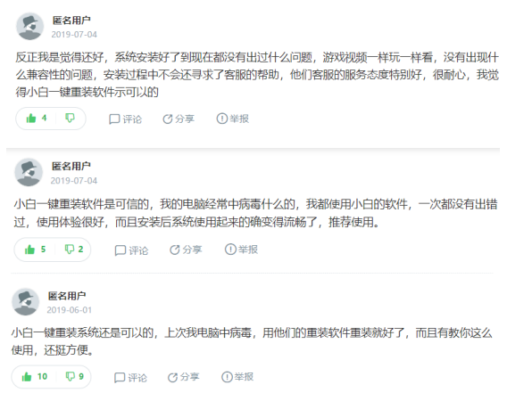 小白一键重装系统在界内口碑还是不错的,帮助无数小白朋友成功安装了系统,满意度超过90%。软件自身之有30M,操作比较简单,傻瓜式操作,点点鼠标即可完成系统重装。经过改版后提供的系统为微软官方原版系统,安装系统的方法也比较多,在线重装方法,U盘启动盘制作,系统的备份还原,最重要的是有问题还可以找人工客服。