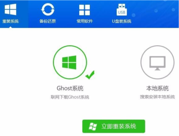 1、退出杀毒软件,打开好装机一键重装系统软件,选择ghost系统,如果下载了系统镜像就选择本地系统,然后点击立即重装系统