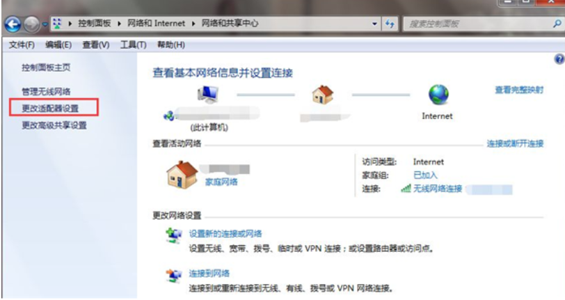 选择【更改适配器设置】进入;