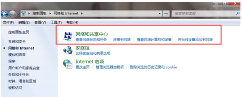 打开win7控制面板,点击进入【网络和internet】;