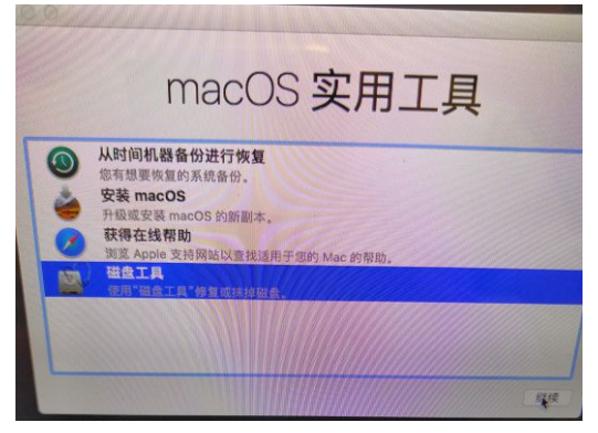 6、关闭“磁盘工具”,开始安装苹果系统,选择刚刚抹掉的那个盘,等待重启电脑
