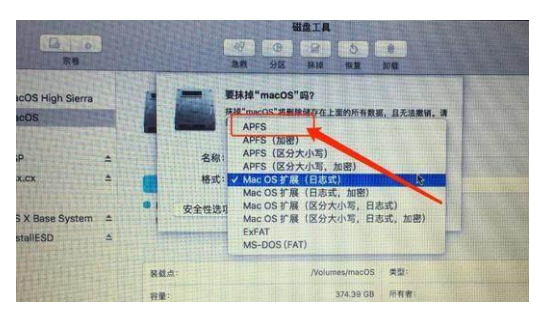 5、找到刚刚自己新建的安装盘,输入一个名称,抹掉格式一定要选择APFS
