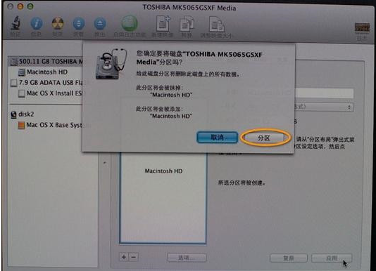 6、提示分区数据将被抹掉,确认没问题后点击【分区】。