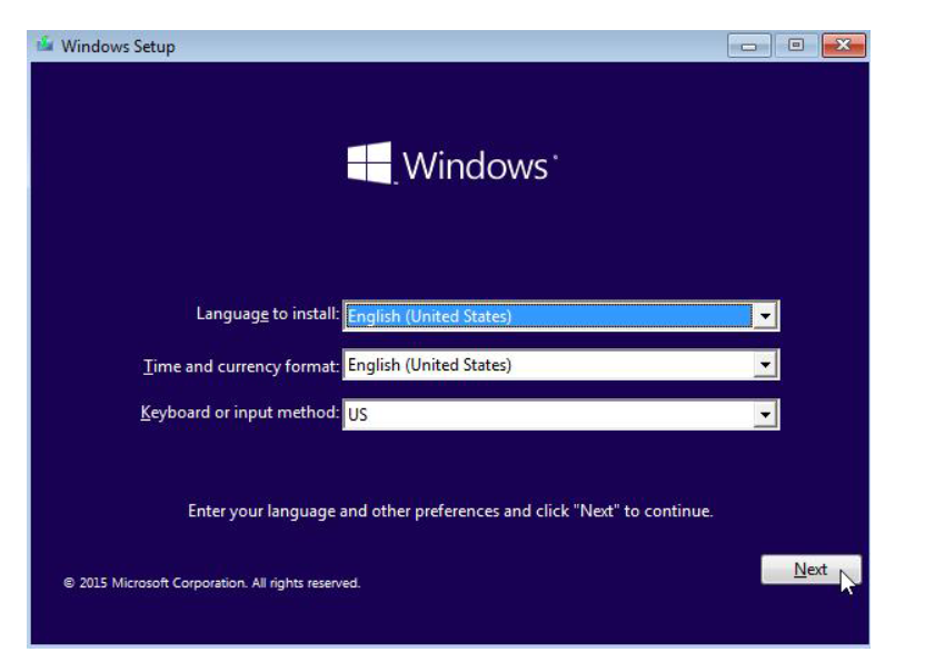 4、选择 Windows 10 的语言、版本和体系结构(64 位或 32 位)。选择完成后点击【next】。