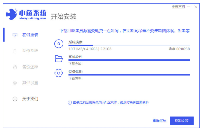3、耐心等待软件自动下载镜像系统和设备驱动等资料。