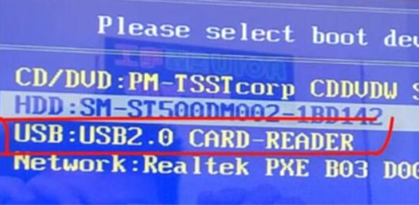 5、成功进入以后可以将我们准备好的U盘直接移动到第一个选项就可以启动。