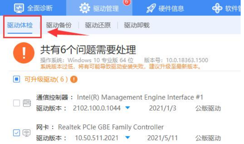 5、接着进入“驱动体检”,就可以重新安装了。