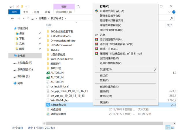 步骤4:点击选择“本地硬盘安装.EXE”,鼠标右键“以管理员身份运行”。见下图所示:
