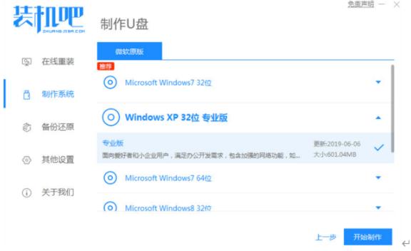 2、接着再选择我们要安装的系统版本,选择完毕后点击开始制作。