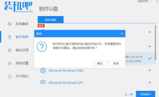 3、这里要注意,u盘制作启动盘时会被格式化,我们需要确保里面没有重要数据再点击确定。